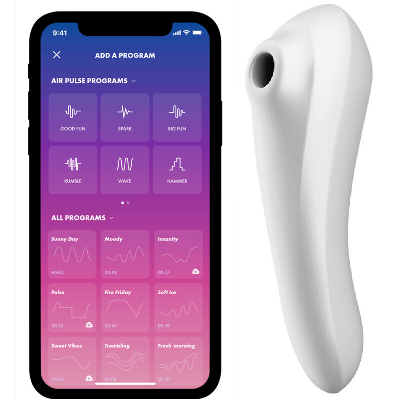 Dupla diversão, duplo prazer: o novo Satisfyer DUAL PLEASURE é um estimulador clitoriano habilitado para Bluetooth e vibrador interno do ponto G. Feito para combinar com o premiado aplicativo Satisfyer Connect, o DUAL PLEASURE acaba de levar sua jornada sensual a um novo nível!